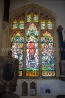 January 1902. Tiffany Window at St Andrew's Church, Kimbolton [Map]. In memory of the two daughters of [her former husband] George Victor Drogo Montagu 8th Duke Manchester and Consuelo Yznaga Duchess Manchester (age 49) [her daughter] Jaqueline Mary Alva Montagu, who died aged sixteen, and [her daughter] Alice Eleanor Louise Montagu, who died aged twenty-one, commissioned by their mother Consuelo Yznaga Duchess Manchester.