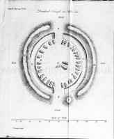 In one of my excursions into the Peak I discovered another ancient monument [Bull Ring Henge [Map]] of this kind. It is about twelve miles north from that, which I have now described. It is situated near the south-west side of Peak Forest. It lies about three quarters of a mile to the right of the road from Buxton to Chapel-en-le-Frith, and at the distance of about two miles from the latter place.