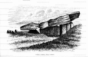 The orientation of the Castell Corrig cromlech is nearly east and west, that is to say, the capstone, which is long, inclines to the west, and not to the east, as in most other examples.
