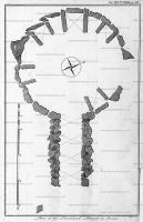 I have the honour to tranfmit herewith the model of a Druid Temple, discovered some time ago on the top of a pretty high rocky hill, near the town of St. Helier, in the Island of Jersey. I am sorry to have so long delayed executing the promise I made to send it your lordship; but it having been transmitted to me without a scale, I did not care to trouble you till that material defect was remedied. By the scale which I have now received, and which is of three feet to an inch, your lordship will see the dimensions are not great, but I imagine it to be the most intire and perfect monument of this kind existing in this part of the world.