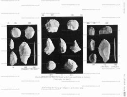 On the old turf line and just above it, Mr. Leslie's rough diary (which the writer has) records the finding of a worked rib-bone and several flints (some worked), a few scrapers, and a quantity of flakes. Several pieces of rough sarsen stone were also found on the old surface.