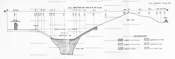 Note 1. In our cutting into the vallum in 1914 there was apparently no indication of an earlier vallum having been surmounted by additional material.