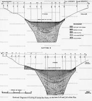 The depth of Cutting II from the surface of the silting on the W. was 18.8 ft.; on the E. 20.5 ft.; the difference was accounted for partly from the fact that the surface rises gradually towards the road.