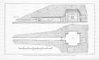 A large buttress (o) stands in each angle of the chamber to strengthen the walls, and support them under the pressure of their own weight, and of the superincumbent clay. These internal buttresses vary somewhat in dimensions, and one of them is considerably lower than the others; but they appear to have been originally all nearly similar in height, and each has a large slab forming one of its sides.