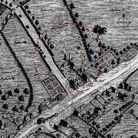 Of the exterior circle of this northern temple but three stones are now left standing, six more lying on the ground, one whereof in the street by the inn-gate. People yet alive remember several standing in the middle of the street; they were burnt for building, anno 1711. That at the corner of the lane, going to the north gate of the town, not many years since lying on the ground, was used as a stall to lay fish on, when they had a kind of market here. The ruin of the rest is noted in the ground-plot, and so of the others. But they told us, that about a dozen years ago both circles were standing, and almost entire. Those in the closes behind the inn, were taken up a year ago; (this was when I first went thither, about 1718,) farmer Green chiefly demolished them to build his house and walls at Bekamton. Of the southern temple several stones were destroyed by farmer John Fowler, twelve years ago; he owned to us that he burnt five of them; but fourteen are still left, whereof about half standing. Some lie along in the pastures, two let into the ground under a barn, others under the houses. One lies above ground under the corner of a house, over-against the inn. One buried under the earth in a little garden. The cavities left by some more are visible, in the places whereof ash-trees are set. All those in the pastures were standing within memory.