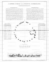 "We visited a Druidical Monument within about two miles of Keswick, situate to the south of the road which we had passed from Penrith.—This monument is placed on a plain, formed on the summit of a hill, around which the adjoining mountains make a solemn circle; --it is composed of stones of various forms, natural and unhewn; they seem to have been collected from the surface, but from what lands it is impossible to conjecture, most of them being a species of granite. The stones are fifty in number, set in a form not exactly circular, the diameter being thirty paces from east to west, and thirty two from north to south: at the eastern side a small inclosure is formed within the circle by ten stones, making an oblong square in conjunction with the stones of that side of the circle, seven paces in length, and three in width, within. In this place we conjectured the altar had been erected. At the opposite side, a single square stone is laid at the distance of three paces from the circle;—possibly this may have been broken off, and is only the foot of such a column as Long Meg [Map] in the Salkeld monument. * * * The stones forming the outward line are some of them standing erect, others fallen, and the same observation is to be made, as to the appearance of entrances, as at Salkeld. The stones here are of various sizes; some of the largest of those standing being near eight feet in height, and fifteen feet in circumference. The singularity noticed in this monument, is the recess on the eastern side."
