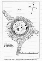 No. 10. The White Raise or Stay-fish Cairn. The site of this structure is on a slight natural eminence, which, with the accumulation of stones, which compose it, gives it an elevation of some seven or eight feet above the level of the surrounding surface. There has been heaped together a quantity of loose stones of every variety of sizes, for even some large boulders still remain, which appear to have bounded the base of the heap, and some which have formed an inner ring. The outside diameter may be said to be from 57 to 60 feet. It is almost impossible to define what the width of the inner ring may have been, as there are only three or four large stones remaining. In all probability there was an inner ring, and judging from what we see in the sister cairn No. 5. on this moor, and from what has lately been made out, in analogous cairn structures in the north of Scotland, this inner ring might have been about 25 feet in diameter. It was here and in Cairn No. 5, there was first described1 as long ago as 1868, that peculiarity of plan and contour, which I then designated the star-fish form, which distinguishes these examples, from so far as I know, all other English cairns.