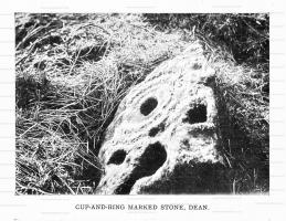 A Freestone boulder, "hogback" in shape, measuring along its base 26 inches, across base 12 inches, in height 15 inches, was found in 1918 when ploughing a field which had not been ploughed for many years (if ever) before, at Dean. The site is about 300 yards from the church and adj oining a field in which are two mounds which look like the sites of archery butts and are so regarded locally, but which may be of earlier date. In the same field is a hill called PARK HILL, known locally as a Roman Camp or Fort, but which may be British: at the foot of this hill are the "parallel trenches" referred to by the late Mr. W. Dickinson in these Transactions, o.s., iii, page 345. Writing of the trenches he says "they are called hiding places of the Britons of old, as such they have hitherto been undisturbed. They are parallel excavations in a swampy hollow and oblong square in form, and though they might be covered with branches for shelter and to deceive the enemy, they would be more uncomfortable than even a wild beast would select for its lair." This description holds good to-day. The six-inch Ordnance Map shows an irregularly oval rampart surrounding the trenches and enclosing an area about 100 yards long.