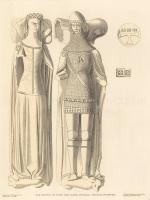 Note a. Pope Boniface VIII. is said to have instituted an order of St. Anthony in 129S, and it is more certainly known that in 1382 Count Albert of Bavaria founded one in Hainault, on occasion of some remarkable cures of the disease called St. Anthony's lire, performed at a chapel dedicated to the Saint. Gentlemen of the first rank and merit were knights of this Order; the ensigns of which are said to have been a crutch, a hermit's cord, and a little bell. (Moreri, Diet. Historique, article St. Antoine.) The Tau cross has very much, it will be observed, the form of a crutch. The surcoat of the knight is exceedingly curious. The little circles with which it is covered must not be mistaken for ordinary mails; the mailing of the camail shows the difference; and indeed the skirt of the hauberk appears underneath this outward defence, which is perhaps of stamped leather or of quilted work thickly set with studs. Mr. Stothard considered this monument to be one of those Erected some time subsequent to the death of the persons whom it represented. In strict chronological order of costume it may be placed sixty or seventy years later.