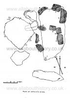 The other circle or pound of which Sir Gardner speaks is 600 yards to the south of these, 400 yards to the south (not S.S.E) of Arthur's Stone—"L." This is like the first pound we mentioned, surrounded by a wall or mound. It is about 60 feet in diameter, but the wall is so broken and knocked about that it is not easy in some places to say exactly what line it took. When I visited this pound a couple of years ago it was in fairly good order and condition, and there were signs of hut circles about it. I am sorry to say that it has recently been robbed and its interest almost entirely destroyed by some Goths who have been digging in it for stones, presumably to break up and make the roads. With all this profusion of stone and rock that is to be had for the trouble of working out of the ground, with a quarry a couple of hundred yards away, it is heartrending to think of the wanton destruction of an ancient remain such as this—only a few years ago the best of its kind in this interesting locality. Objects of antiquarian interest such as these, honoured and carefully preserved, may be visited by tourists not from this Island only, but from distant lands as well, and may be a source of wealth to the neighbourhood that possesses them. To mutilate them is to destroy them, and it is a crime, whether it proceeds from the greed and parsimony of a contractor or the ignorant brutality of uneducated boors from town or country.