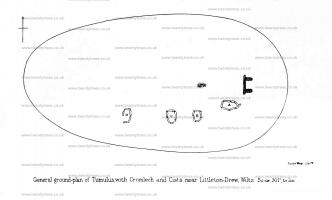 Both Aubrey and Sir Richard C. Hoare appear to connect the barrow with Littleton Drew rather than Nettleton; and the latter, in particular, insists on its neighbourhood to Littleton Dru or Drer, a name evidently of druidical antiquity." There is perhaps no difficulty, in the fact of its position beyond the boundary of the parish of Littleton, in connecting it with this place rather than with Nettleton; there being much reason for concluding that the existing parochial divisions, in many cases at least, do not ascend beyond Norman times. Whether, however, the epithet Drew had in its origin any reference to the Druids, may admit of enquiry. There are at least three other places, where are remarkable remains commonly called druidical, into the name of which this epithet enters. These are Stanton Drew in Somersetshire, where are the well known megalithic circles of unhewn stones, inferior only in Bize and number to those of Abury; Drews' Teignton, Dartmoor, Devon, where is one of the best preserved cromlechs in England; and Trer Drew in Anglesea, near the spot where the Romans are believed to have landed, and where are many remains of cromlechs and other early British monuments. Here, not improbably, were the groves devoted to superstition and barbarous rites, with altars dedicated to human sacrifices, which, Tacitus tells us, were destroyed by the Romans1 In all these cases, topographical writers to the present time, have not failed to connect the epithet Drew with a supposed Druidical origin. This has however been contested by some, who suppose this name to be derived from that of families who have lived near, or possessed lands at, these places. Aubrey himself in his "Collections" for North Wilts, has preserved a deed, probably of the 12th century, to which "Walterus Drew, Dominus de Littletone" is the principal party.2 The question certainly admits of discussion, though the evidence seems to be in favour of the druidical derivation of the name; and in this instance there appear grounds for Dr. Stukeley's opinion, who, in writing of Stanton Drew, says, "I make no doubt but the name of Stanton Drue is derived from our monument, Stanton from the stones, and Drue from the Druids. It moves not me that some of the name of Drew might have lived here formerly, for such a family might take the denomination of the town, and leaving out the first part retain only that of Drew. It is sufficient conviction that there are so many other [places] in England and elsewhere that have preserved this name, and all remarkable for monuments of [this] nature.3
