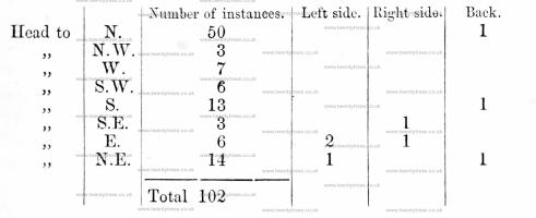 With this table we may compare the following orientations collected from Sir Richard Hoare's Ancient Wilts. Number of instances.