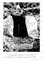 One of the workmen present when the uprights at the entrance were first uncovered stated that a thin slab of stone was found resting lengthwise against the outside of the two uprights; from his description it also appears that the stones immediately outside the entrance were larger than elsewhere. Possibly these formed a dry walling closing up the chamber.
