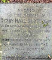 On 9th November 1911 [his father] Henry Hall Scott (age 77) died at Edinburgh. He was buried in Lesbury Churchyard [Map] on Monday, 13th November 1911. The coffin was conveyed from Hispburn to Lesbury on a draped lorry, and the burial service was conducted by the Reverend Canon Moore of Alnwick, and the Reverend G. Bray, of Lesbury.