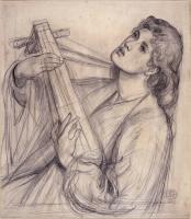 1857. Dante Gabriel Rossetti [aged 28]. "The Harp Player", study of Annie Miller [aged 22]".