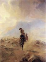 1879. Elizabeth Thompson Lady Butler (age 32). "The remnants of an army, Jellalabad, January 13, 1842" aka "Remnants of an Army". Depiction of William Brydon, assistant surgeon in the Bengal Army, the only survivor, arriving at the gates of Jalalabad in January 1842.