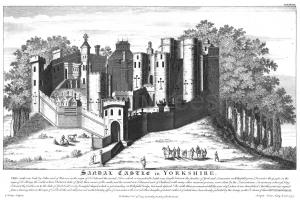Vesta Monumenta. 1753. Plate 2.11. Sandal Castle [Map]. Engraving by George Vertue (age 69) after a drawing originally produced for a survey of the properties of the Duchy of Lancaster conducted by the Chancellor of the Duchy, Ambrose Cave, in 1561.