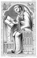 Vesta Monumenta. 1755. Plate 2.15 and 2.16. Two images from a twelfth-century manuscript, the Eadwine Psalter. The first is a plan of the monastery precinct at Christ Church, Canterbury, including Canterbury Cathedral [Map] as it stood prior to 1174. The second plate reproduces an author portrait of Eadwine of Canterbury, after whom the entire manuscript is named. Engravings by George Vertue (age 71) after drawings of the manuscript made at Cambridge in 1753 by an unknown draftsman.