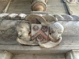 On 10th September 1698 Theophilus Hastings 7th Earl Huntingdon (age 47) wrote to Laurence Cromp of the Herald's Office about his own monument. In the letter he says: "I have now made a perfect agreement, with Mr Gibbons (age 50) the Carver, in Bow Street for the monument which if made according to the modell, I shall like very well; I therefore desire you, to doe me the kindness to Call on him to see in what forwardnesse it is in, and what your judgement is of itt; particularly as to the armes ....". The Earl then talks about the Hastings Crest Bull's Head. The Earl's own monument does not include a Bull's Head so the letter does not appear to be about this. The wall monument does have a Bull's Head as part of the Hastings coat of arms so it could be this monument which the letter is about. However, the wall monument is similar in style to the chest tomb and so would appear to be of the same date. This would leave unresolved the question of why the Earl wrote at such length about the design of the Bull's Head. It also raises the issue of why there are two monuments to the 2nd Earl considering that the family were heavily in debt at the time. (Richard Parker was paid £20, equivalent to £16,600 today, for a similar chest tomb for the 1st Earl of Rutland). Source Church Monuments Society.