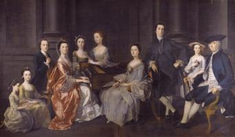 1755 . Henry Pickering (age 35). Wolstan Dixie 4th Baronet (age 55) of Bosworth Hall, Leicestershire, and his family seated around a harpsichord.