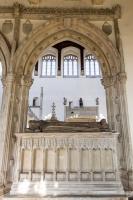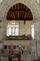 After 1419. Monument to Michael de la Pole 2nd Earl Suffolk and [his former wife] Katherine Stafford Countess Suffolk (age 43) in St Andrew's Church, Wingfield [Map]. Early Plate Bascinet Period.