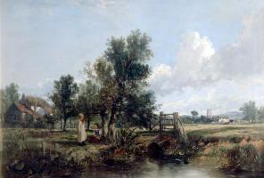 Memoir of the Life of William James Müller. A few more lines, brief and sad, and this memoir will be finished. On Monday morning, the 8th of September [1845], Edmund Muller had commenced to set his brother’s palette after breakfast, as was his wont; and William Muller (age 33), who was propped up, seemed about as well as he had been of late, when suddenly a change came over him. He appears to have broken an internal blood-vessel. He had just strength to call to his brother for help, and then said, "Remember Gooden and — and — that other." He could not pronounce the name, but it was supposed to be Charles Bentley, to whom he was much attached. Soon after this, exhausted nature gave way, his head fell, and he never spoke again. He had entered "the Silent Land," and all his work and sufferings were over.
