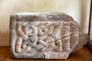 Around 800. All Saints Church, Hough-on-the-Hill [Map]. Part of the impost of a Saxon arch.