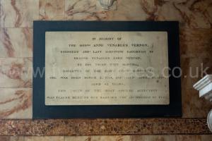 After 10th April 1837. Memorial to Anne Venables-Vernon (deceased) at All Saints Church, Sudbury [Map] placed by Archbishop Edward Venables-Vernon-Harcourt (age 79).