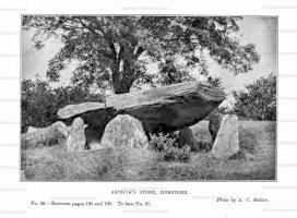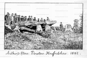 The very fine, and tolerably well-preserved Cromlech (Welsh, from crom, bent, arched or covering; llec a flat stone) on Merbage Hill, in the parish of Dorstone, known by the name of "Arthur's Stone [Map]," is one of the most perfect Druidic structures in our Island.