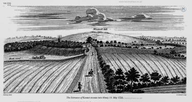 Avebury by William Stukeley. Table XVIII. The Entrance of Kennet avenue into Abury [Map] 14 May 1724.
