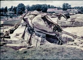Keiller's Slides TR000083. 1938. General view of the re-erection of stone 6 [Map] in the south west sector of the henge at Avebury, showing the use of pullys.