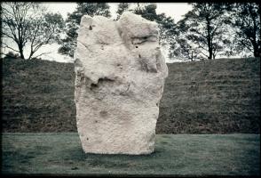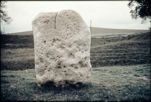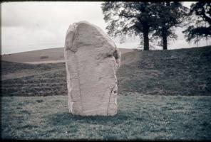1938-39. Alexander Keiller's Slides. General view of Stone 12 [Map] in the south west sector of the henge at Avebury, showing the inner face.