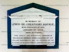 On 3rd January 1864 Lewis De Crespigny Buckle (age 19) died at sea whilst on the S.S. Nemesis, a collier that was transporting coal from Newcastle to Melbourne. Memorial at Chapel of St John the Evangelist, Bolton [Map].