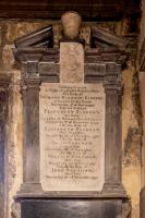 1666. Marble sarcophagus with crest above supported by putti, to Sir William Bullock at Church of St James the Great, Norton [Map].