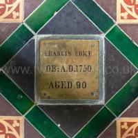 After 1750. Floor marker in the Chancel of Church of St Mary Magdalene, Eardisley [Map] to Francis Coke (age 89).