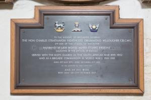 After 15th December 1949. Church of St Michael and All Angels, Edenham [Map]. Monument to Charles Strathavon Heathcote-Willoughby-Drummond (deceased).