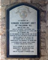 After 7th September 1933. Church of the Holy Trinity Embleton [Map]. Memorial to Edward Grey 1st Viscount Fallodon (deceased) and Dorothy Widdrington.