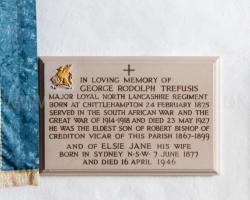After 23rd May 1927. Memorial to George Rodolph Trefusis at the Church of the Holy Trinity, Weare Giffard [Map].