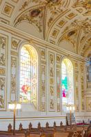 In 1747 Saint Michael and All Angels Church, Great Witley [Map] was transformed. Thomas Foley 2nd Baron Foley (age 44) acquired by private sale from the Duke of Chandos' Canons Palace, Edgeware, near London the ten stained glass windows and the oil on canvas paintings which were placed insitu on a new curved ceiling, purpose built to hold the central painting 'The Ascension'. This painting is stretched onto a wooden curved frame. The organ and pipes were also included in the private sale. The moulds for the wall and ceiling decorations were taken from the original designs of the plasterwork at Canons and recreated from papier mache. Papier mache had just been perfected by Henry Clay of Birmingham.