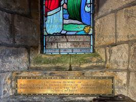 On 8th May 1926 Edward Dent (age 70) died. Wall memorial at St Andrew's Church, Bolam [Map].