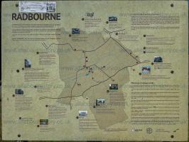 Map of Radbourne with St Andrew's Church [Map] [10] at its centre at the bottom of the lane where it crosses the river into the grounds of Chandos Hall [1].