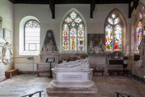 On 18th November 1616 or 19th November 1616 Thomas Chicheley of Wimpole (age 38) died. He was buried in St Andrew's Church, Wimpole [Map]. Stuart Period. Two-stage altar tomb in alabaster and black marble with miniature effigies in the lower stage, inscription panels and shield of Chicheley Arms impaled, supporting a recumbent effigy in armour. Tassets.