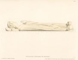He was buried at Wingfield, and the Countess his wife, who was one of his executors, erected, in all probability, the monument there which commemorates him and herself. The effigies of de la Pole and his Countess are eminently beautiful specimens of female and military costume in the time of Henry the Fifth. The grand simplicity of the very plain suit of plate-armour which he wears, personihes the idea which we entertain of the appearance of the martial spectre so boldly imagined by Shakspeare for one of his finest dramas.