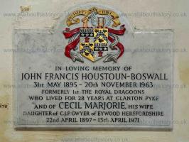 St Bartholomew's Church, Whittingham [Map]. Memorial to John Francis Houston-Boswall died 20th November 1963.