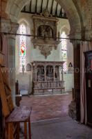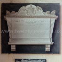 After 1656. St Edburga's Church, Leigh [Map]. Monument to Walter Devereux 5th Viscount Hereford (deceased) and Elizabeth Knightley Viscountess Hereford. Canopy suported on Ionic Capitals.