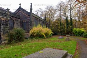 In 1850 St James' Church, Didsbury [Map] became the parish church of Didsbury. The nave was constructed in 1855, the chancel in 1871 and the east part of the south aisle in 1895. The church is of red sandstone with slate roofs.