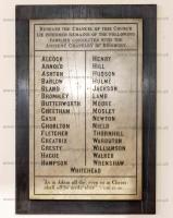 1620. A memorial stone over the north door of St James' Church, Didsbury [Map] commemorates its benefactors including Edward Mosley (age 50)