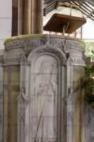 Monument at St James' Church, Didsbury [Map] with Nicholas top centre in the robes of the Lord Mayor of London, Rowland Mosley (age 54) bottom left, Nicholas's sons Edward and Edward Mosley, bottom centre, and Nicholas' wife Margery Whitbroke.