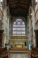 1859. West Window. The stone tracery of this window dates from the remodelling of the church in the second quarter of the 15th century; but the glass is all 19th Century. The glass was installed under the supervision of Gilbert Scott during the 1859-60 restoration. The artist was Thomas Willement, the 'Father of Victorian Stained Glass' who had 'reinvented' the art of traditional stained glass-making from the observation of 15th Century examples at York Minster and elsewhere. The window was the gift of Beriah Botfield (age 51) and his wife Isabel Leighton. The window features eleven men, each with a connection to the town's history: