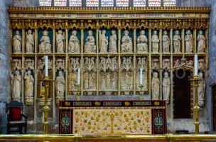 Between 1433 and 1471 the nave, tower and chancel at St Laurence's Church, Ludlow [Map] were rebuilt. In 1833 the East window depicts the martyrdom of St Laurence underwent restoration.
